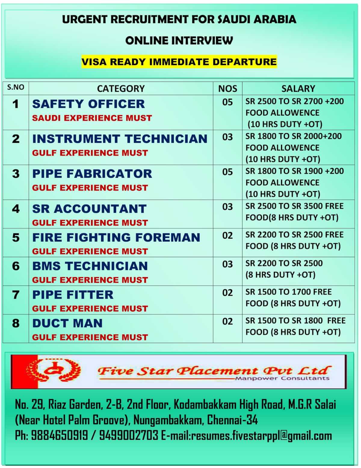 Urgent requirement for Saudi arabia