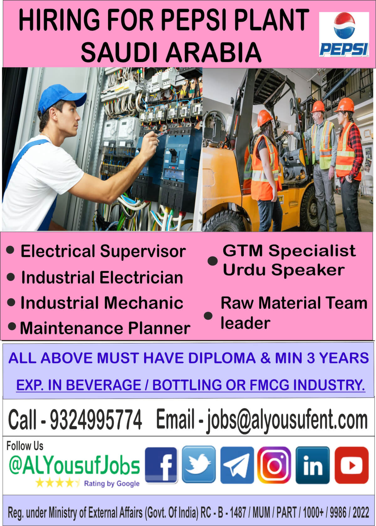 Hiring for Pepsi Plant in Saudi arabia