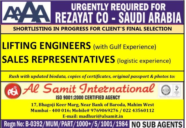 Rezayat Group Jobs - Wanted for Saudi arabia