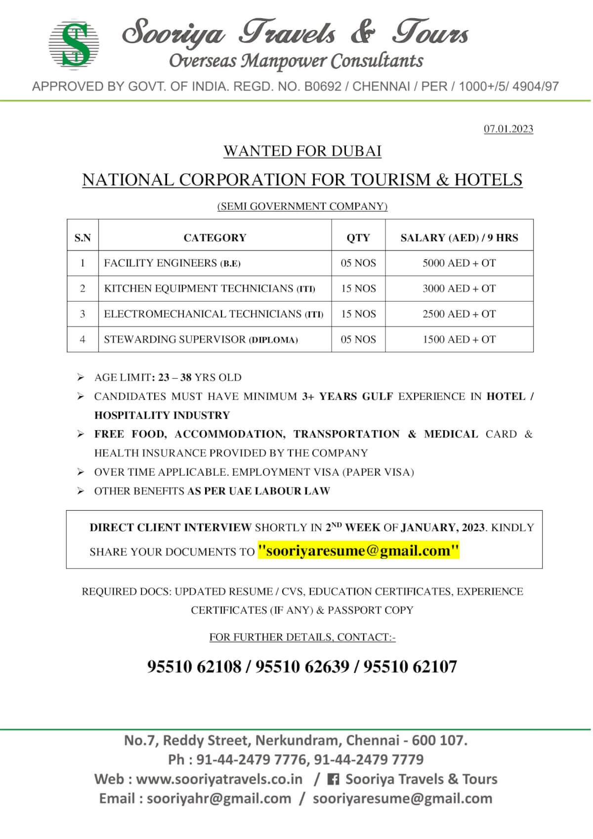 Candidates must have minimum 3 + years GCC experience in hotel/hospitality industry