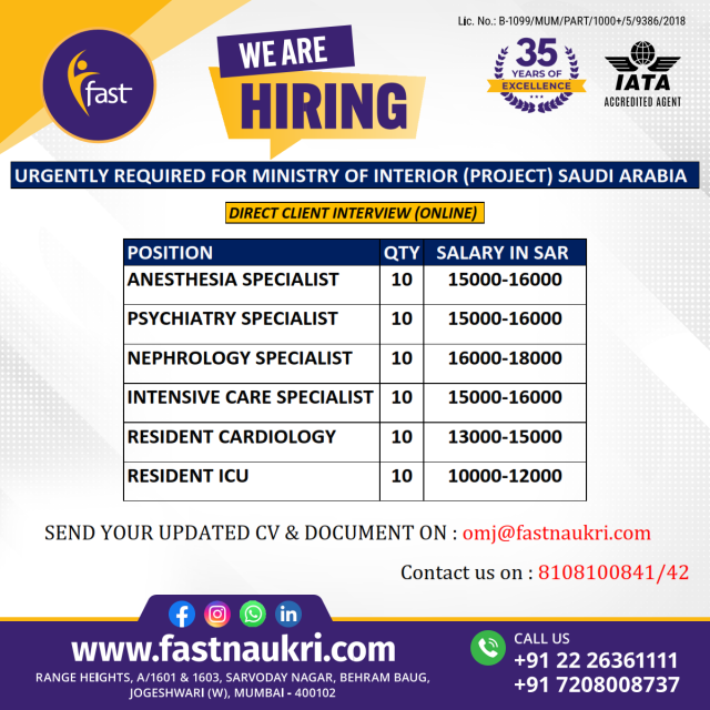 | Anesthesia specialist | 10 | 16000 SAR |