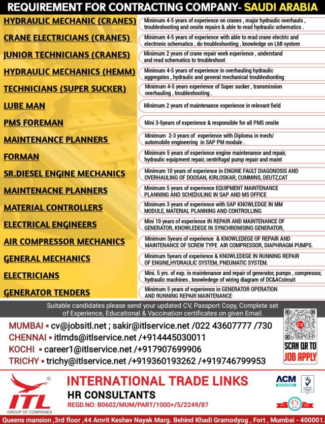 Hiring for Contracting Company in Saudi arabia