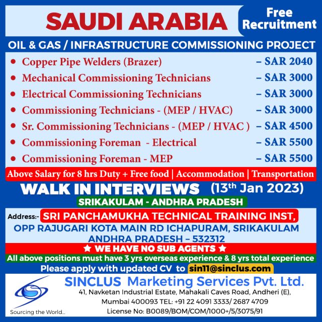 Free recruitment to KSA - Oil & Gas Commissioning Project