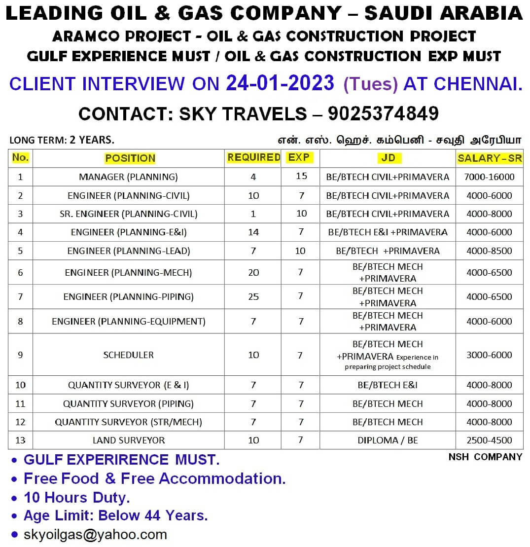 Recruitment to Oil & Gas Company in KSA - Aramco Project