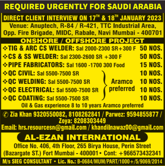Email: hrs.resourcesn@gmail.com / khandilnawaz00@gmail.com/ Zia Khan: 9320550082, 8108262841/ Parwez: 9594855877/ Zoya: 8208303449