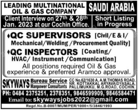 | QC supervisors (civil/E & I/mech/welding/procurement quality) | ||
