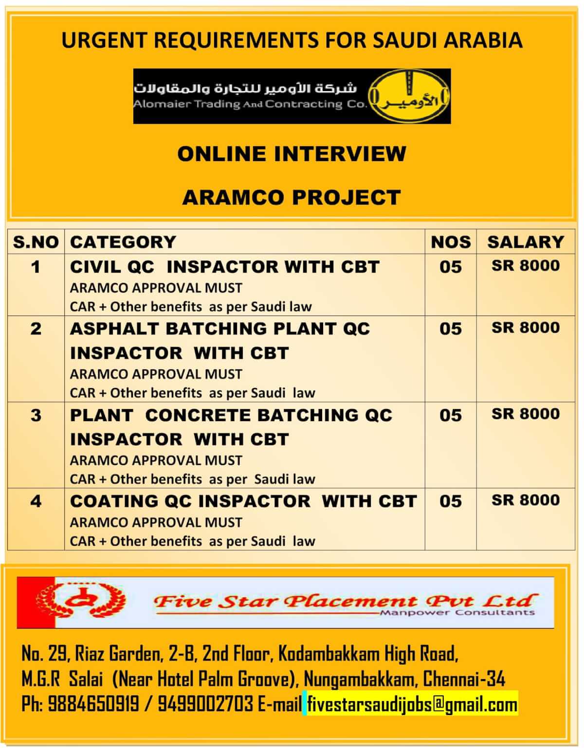 | Civil QC inspector with CBT | 5 | 8000 SAR |