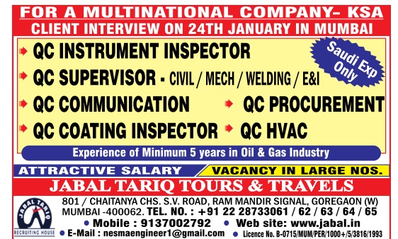 Disclaimer:- GCCWALKINS have no involvement in any recruitment process, This website just sharing job vacancies & interviews from various sources. Applicants are advised to research the bonafides of the prospective employer independently. We do NOT endorse any requests for money payments and strictly advice against sharing personal or bank related information. If you suspect any fraud or malpractice, email us at gccwalkins@gmail.com