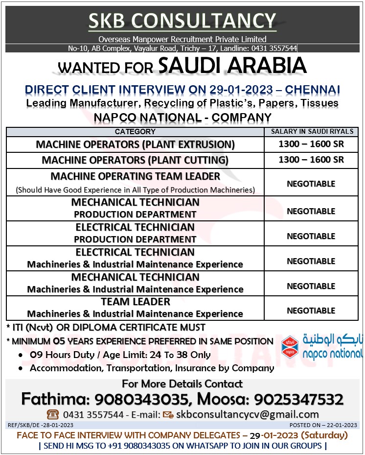 Disclaimer:- GCCWALKINS have no involvement in any recruitment process, This website just sharing job vacancies & interviews from various sources. Applicants are advised to research the bonafides of the prospective employer independently. We do NOT endorse any requests for money payments and strictly advice against sharing personal or bank related information. If you suspect any fraud or malpractice, email us at gccwalkins@gmail.com