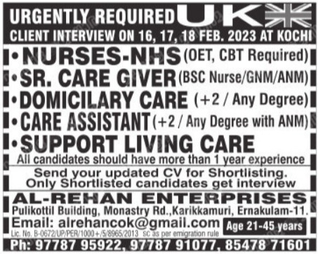 Walk-in-interview on 16th, 17th & 18th Feb 2023 at Kochi