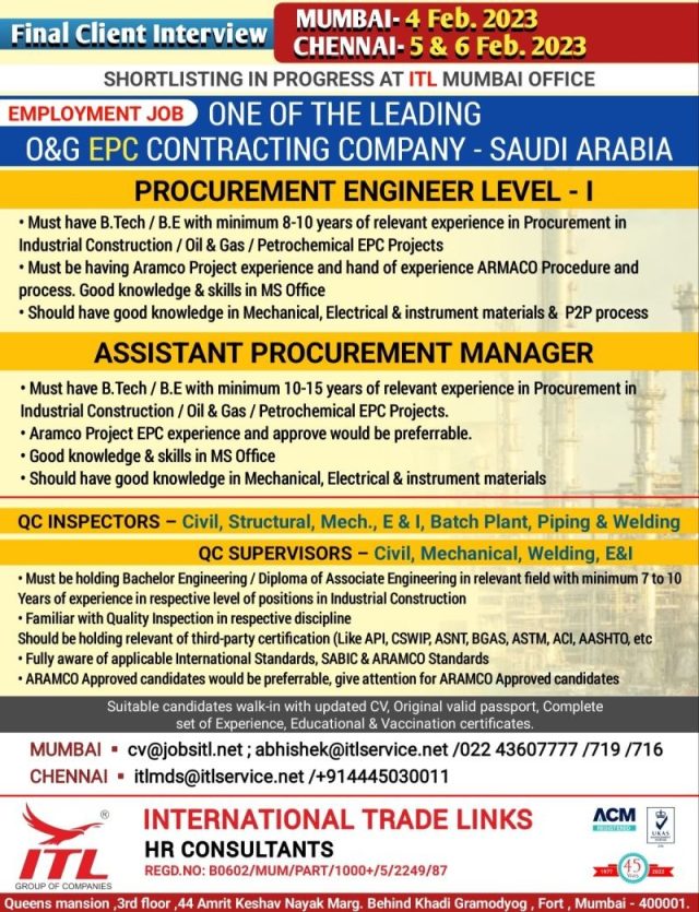 | Procurement engineer level - I | ||