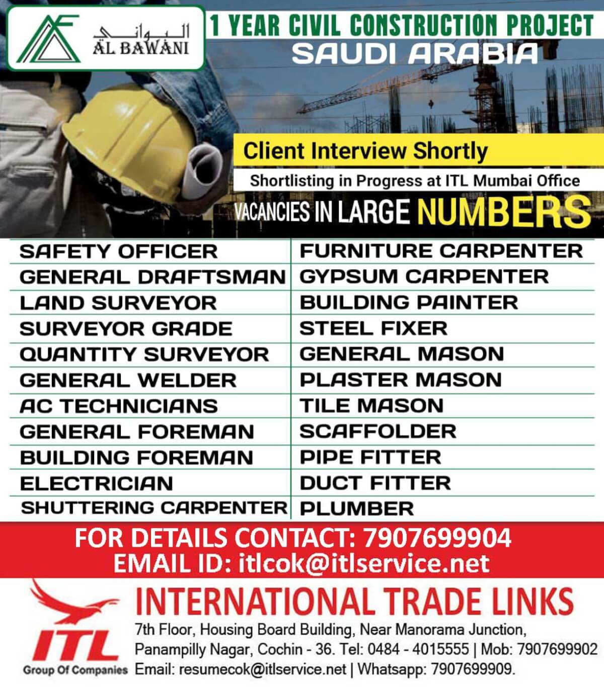 Al Bawani Company vacancy - Hiring for Civil Construction Project