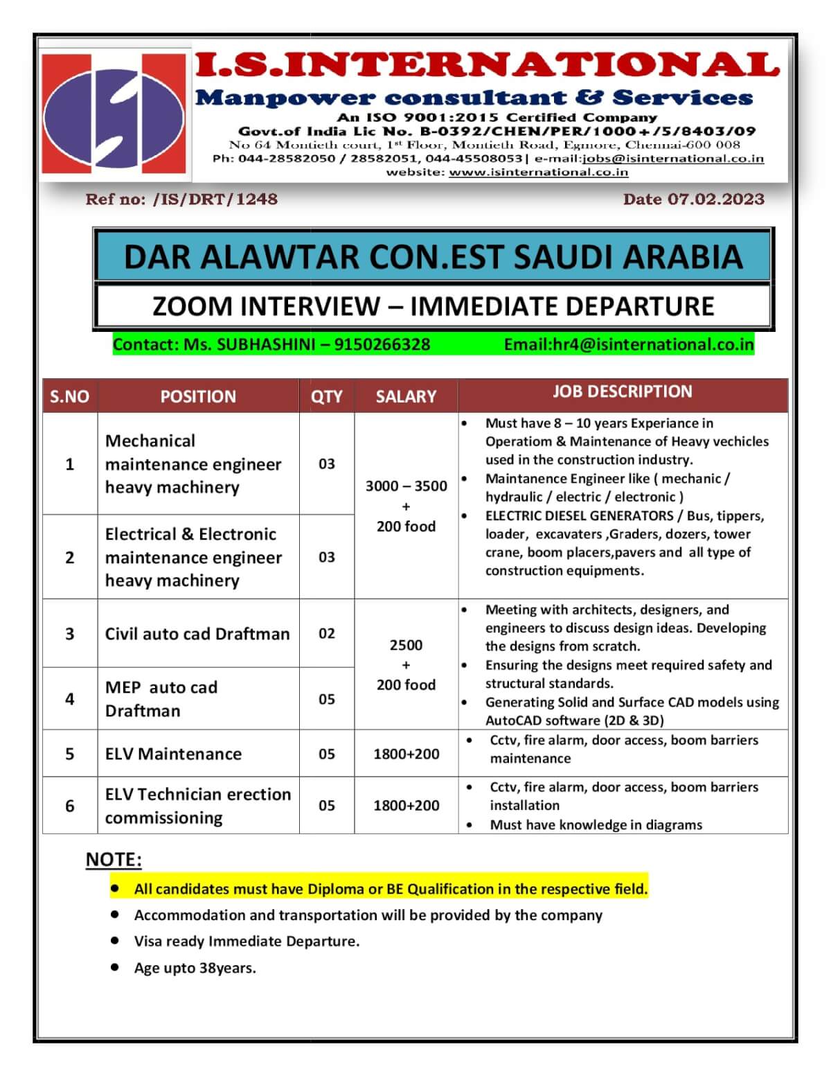 Email:hr4@isinternational.co.in