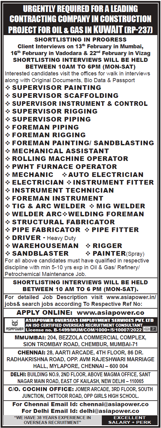 Disclaimer:- GCCWALKINS have no involvement in any recruitment process, This website just sharing job vacancies & interviews from various sources. Applicants are advised to research the bonafides of the prospective employer independently. We do NOT endorse any requests for money payments and strictly advice against sharing personal or bank related information. If you suspect any fraud or malpractice, email us at gccwalkins@gmail.com
