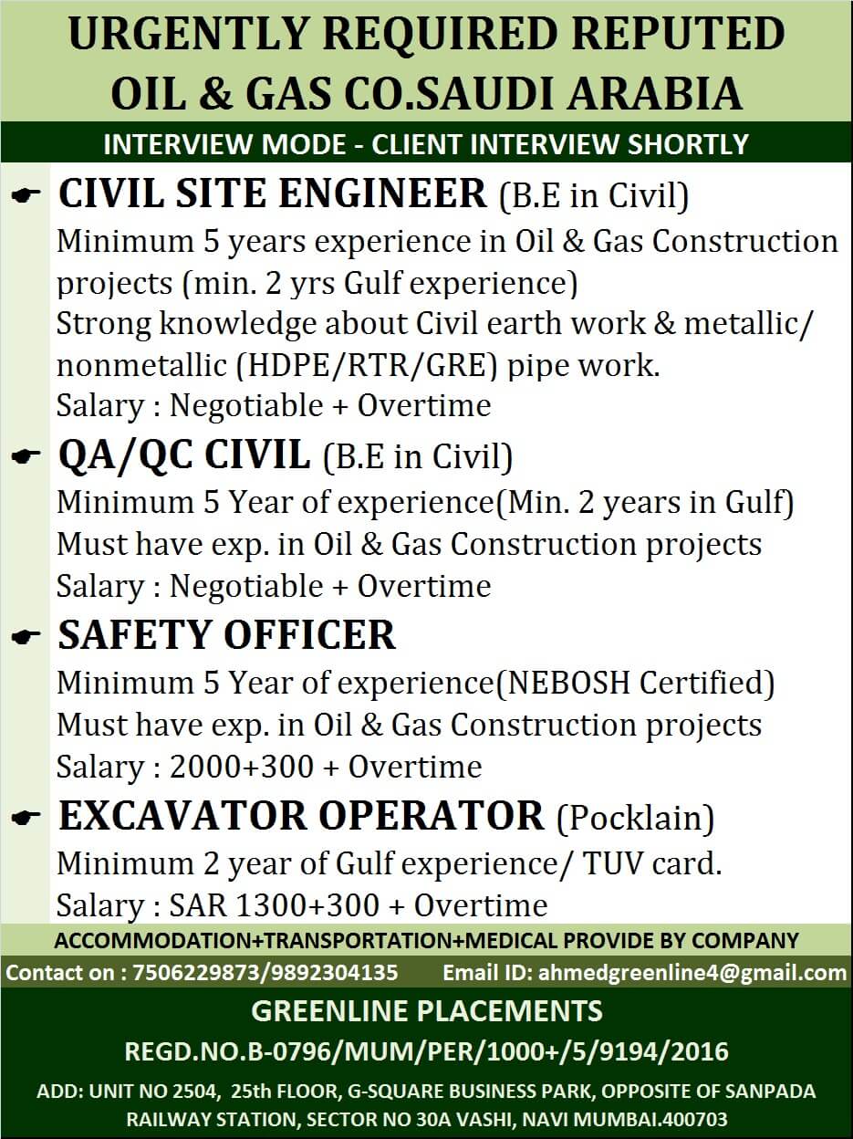 Wanted for Oil & Gas Company in Saudi arabia