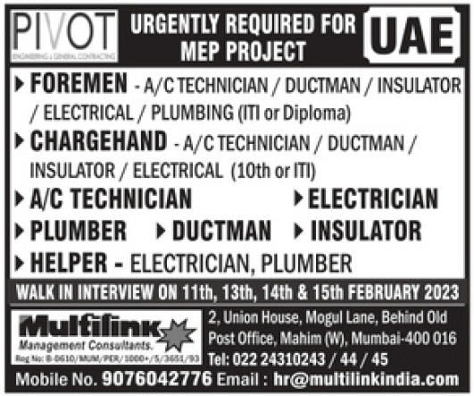 Email: hr@multilinkindia.com / 022 24310243/44/45, 9076042776