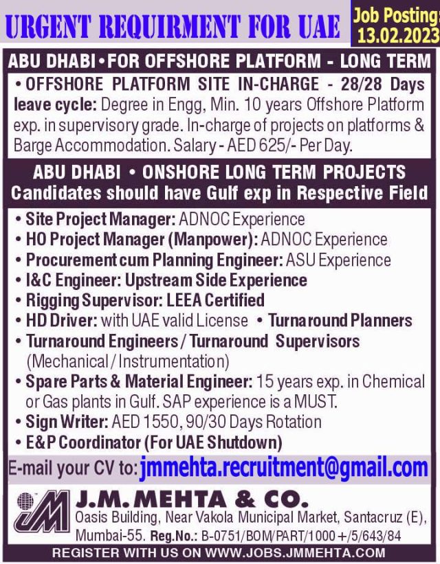 Email: jmmehta.recruitment@gmail.com