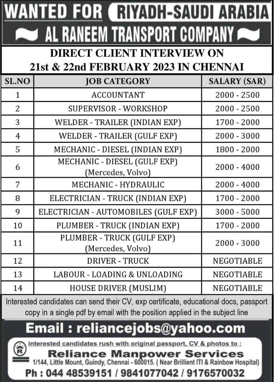 Al Raneem Transport company jobs - Hiring for Saudi arabia