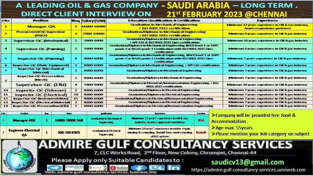 Recruitment to oil & gas company in Saudi arabia