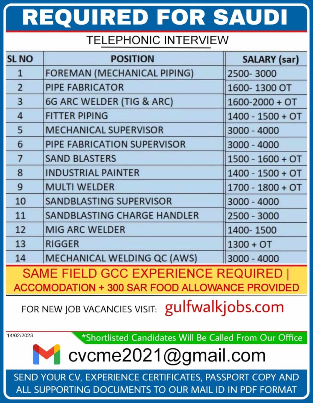 Disclaimer:- GCCWALKINS have no involvement in any recruitment process, This website just sharing job vacancies & interviews from various sources. Applicants are advised to research the bonafides of the prospective employer independently. We do NOT endorse any requests for money payments and strictly advice against sharing personal or bank related information. If you suspect any fraud or malpractice, email us at gccwalkins@gmail.com