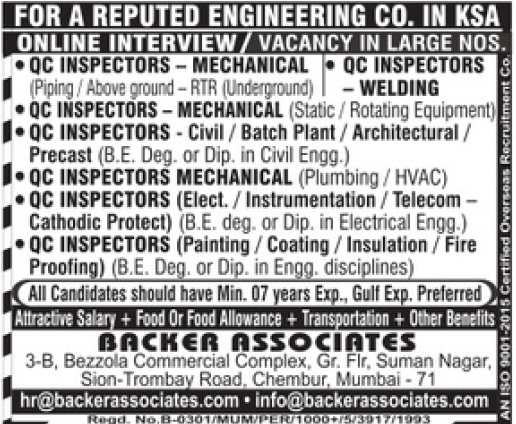 | QC Inspectors - Mechanical | ||