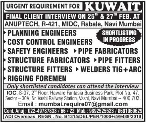 Urgent requirement for Kuwait