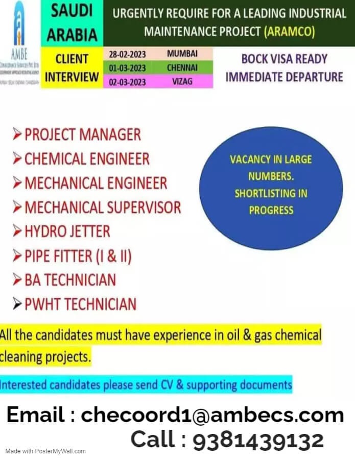 Recruitment to Saudi arabia - Aramco Maintenance Project