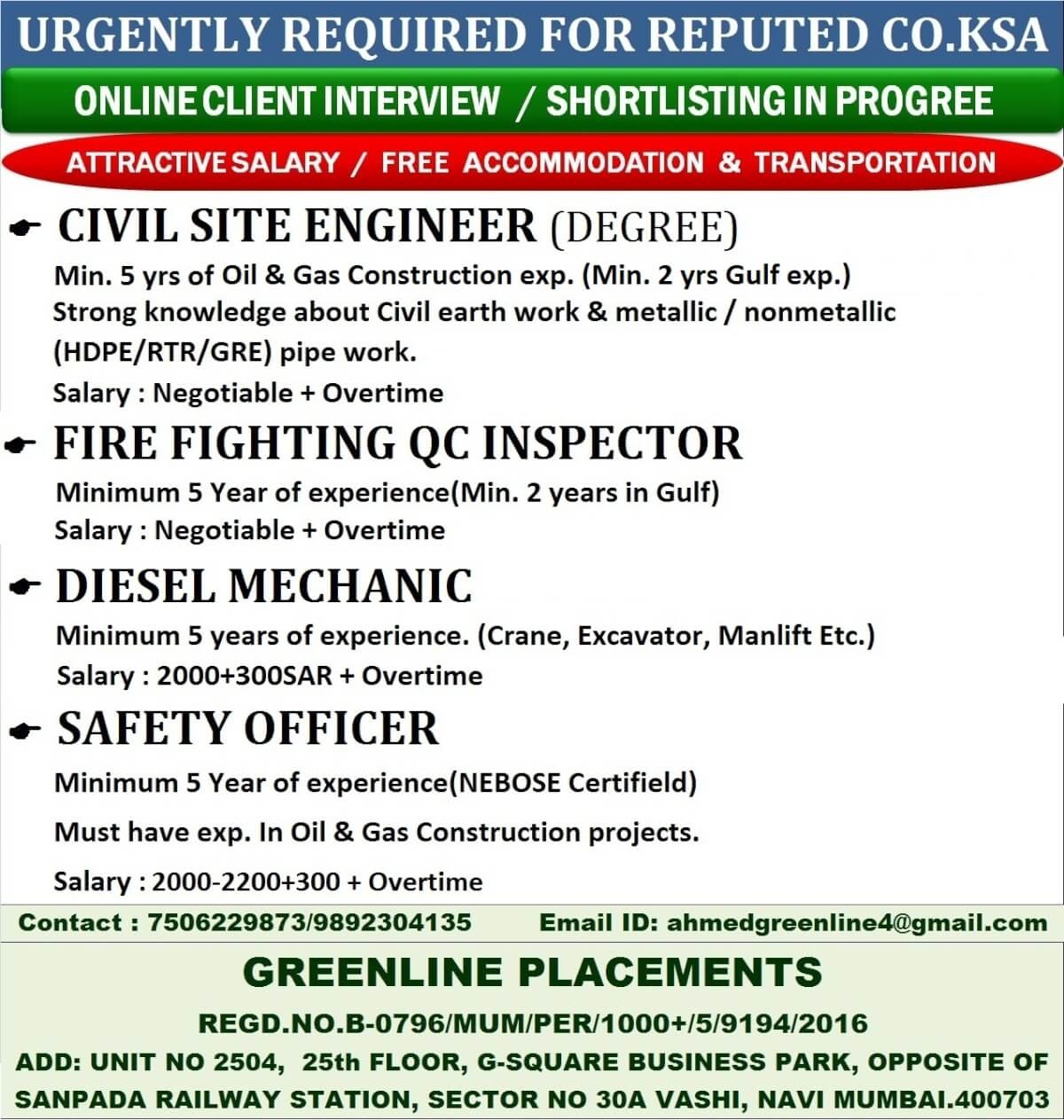 Urgently required for Saudi arabia