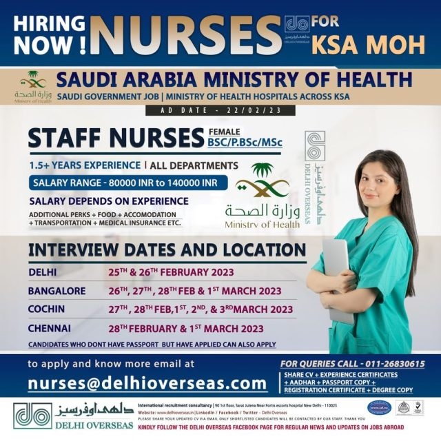 Staff nurse vacancy in Saudi arabia - Walk in Interview