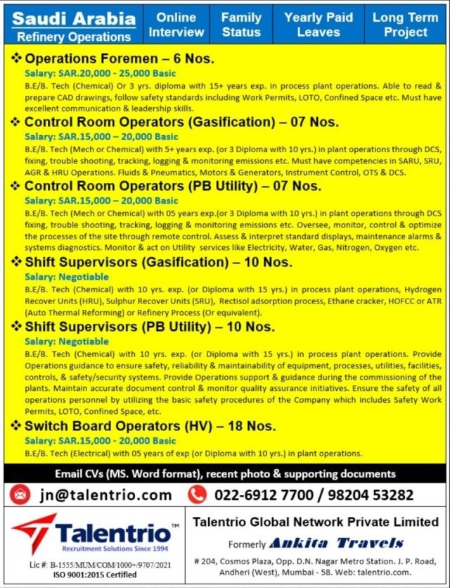 Oil Refinery Jobs in Saudi Arabia - Long Term Project