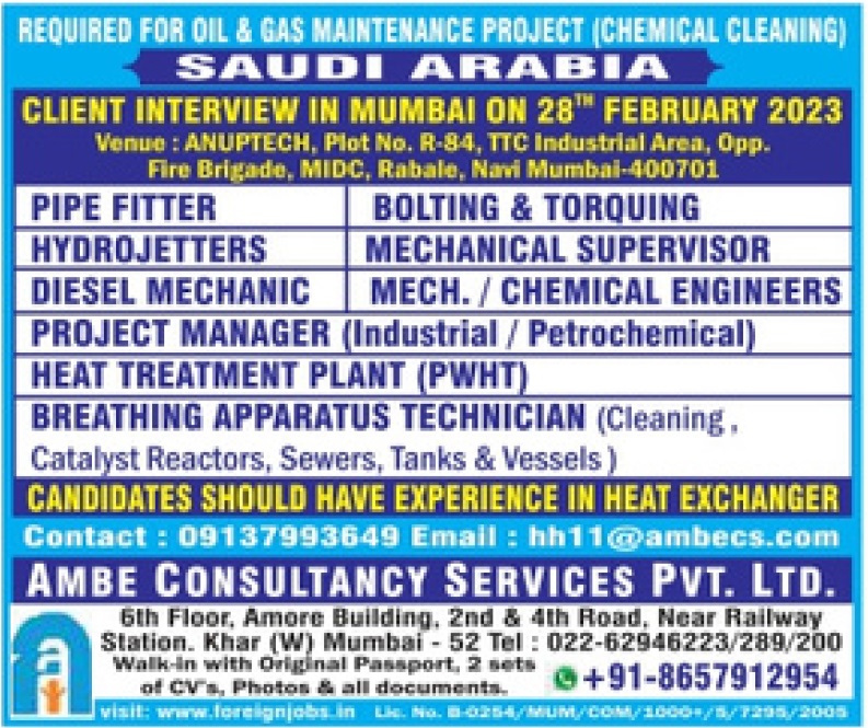 Oil & Gas Maintenance Project - Hiring for Saudi Arabia