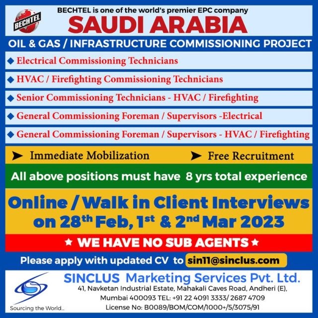 Free recruitment to KSA - Oil & Gas Commissioning project