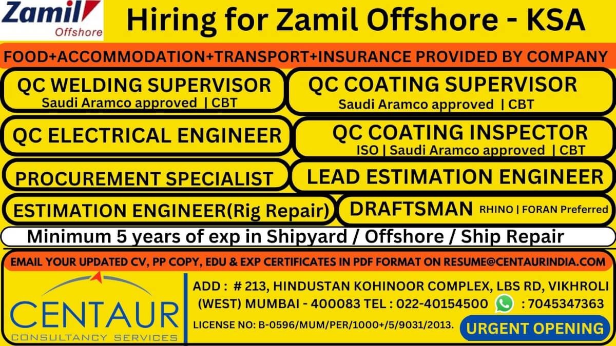 Zamil Offshore vacancy - Hiring for KSA