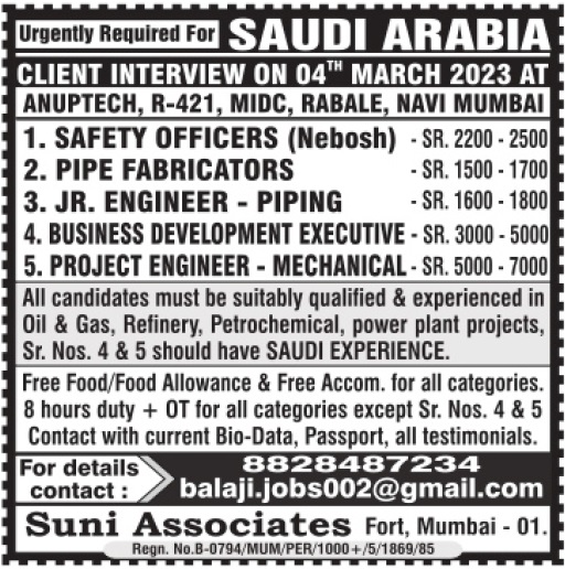 Candidates must have oil & gas, refinery, petrochemical, power plant projects experience