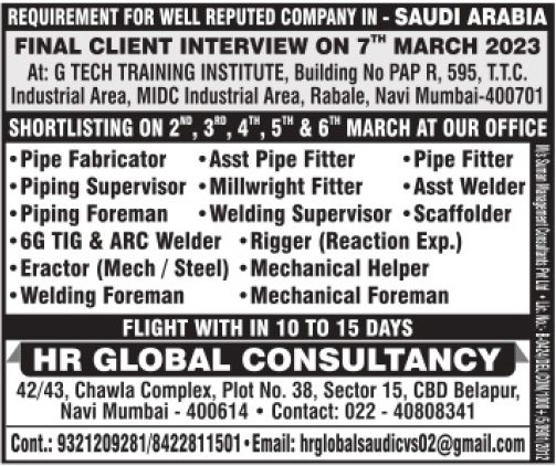 Disclaimer:- GCCWALKINS have no involvement in any recruitment process, This website just sharing job vacancies & interviews from various sources. Applicants are advised to research the bonafides of the prospective employer independently. We do NOT endorse any requests for money payments and strictly advice against sharing personal or bank related information. If you suspect any fraud or malpractice, email us at gccwalkins@gmail.com