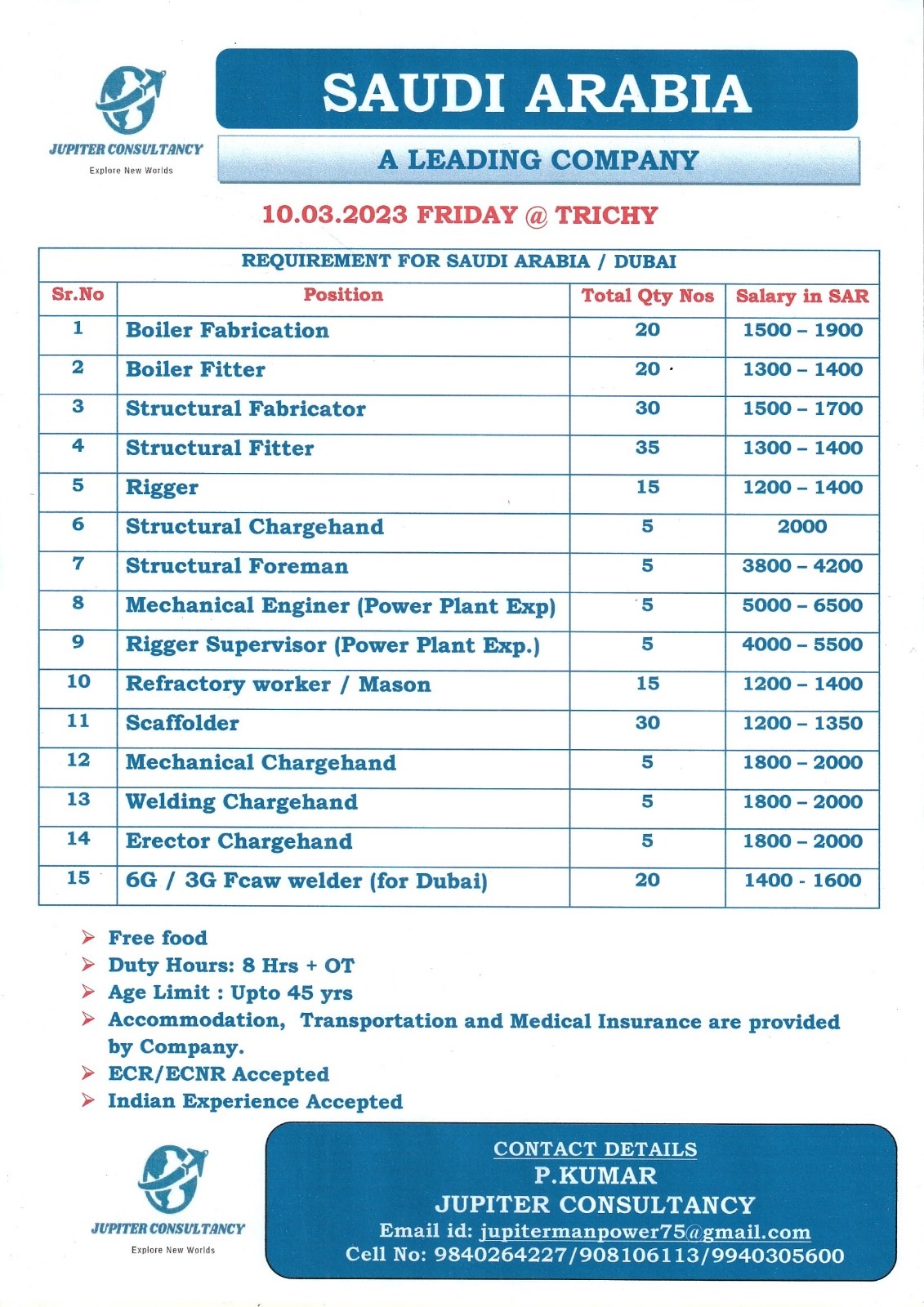 Email: jupitermanpower75@gmail.com / 9840264227, 908106113, 9940305600