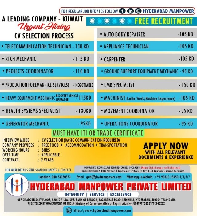 Email: gulf@hydmanpower.com / 040 23320373, 9032023450/1/3/5/7