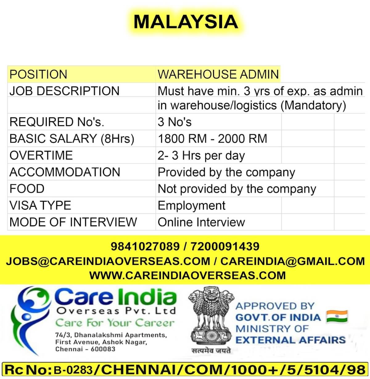 Warehouse admin job vacancy in Malaysia