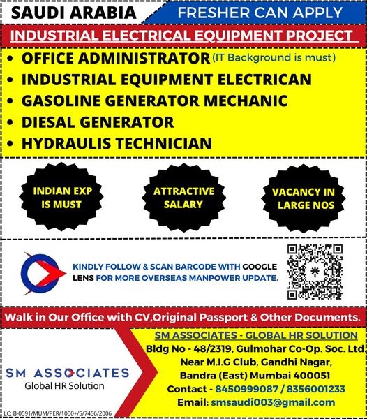 Wanted for Saudi arabia - Freshers Can Apply