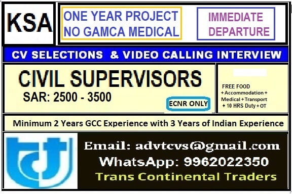 Civil supervisor job vacancy in KSA