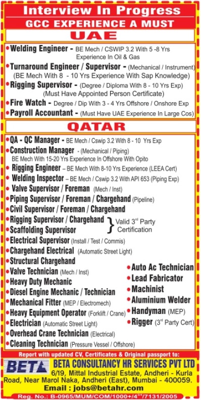 Job Location: UAE, Qatar,