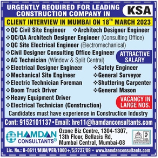 Construction Company - Hiring for Saudi Arabia