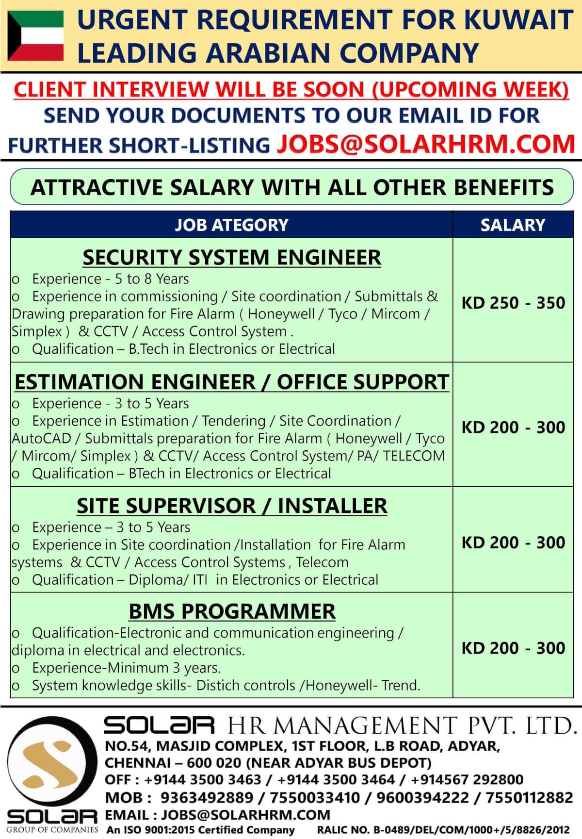 Security System Engineer | 350 KWD | |
