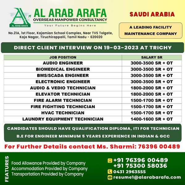 | HVAC technician | 1700 SAR | |