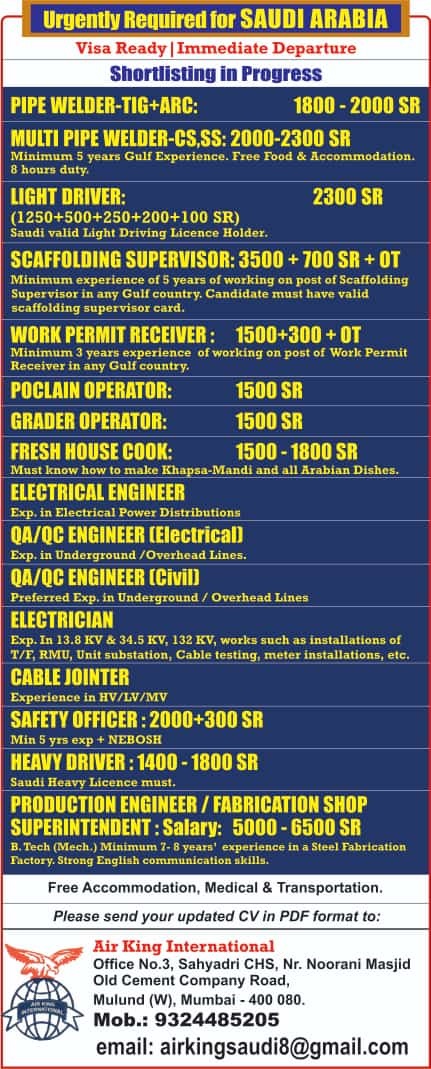 Urgent requirement for Saudi arabia - Visa Ready