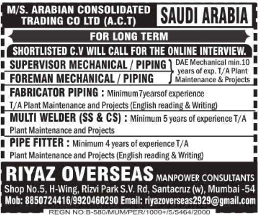 ACT Company Saudi Arabia jobs 2023 - Urgently required