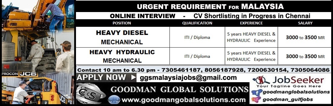 Email: ggsmalaysiajobs@gmail.com / 7305461187, 8056187928, 7200630154, 7305064086