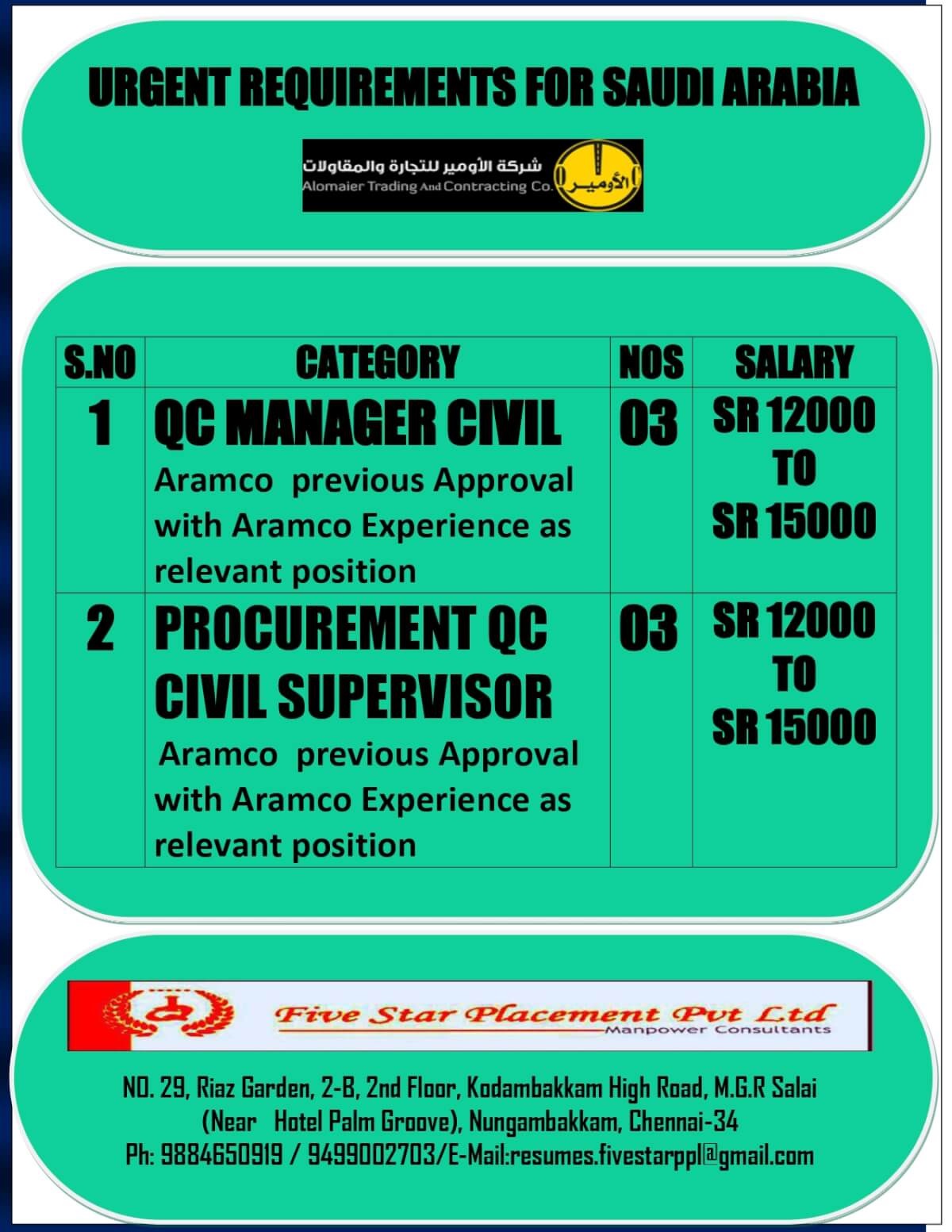 | Procurement QC Civil Supervisor | 03 | 15000 SAR |
