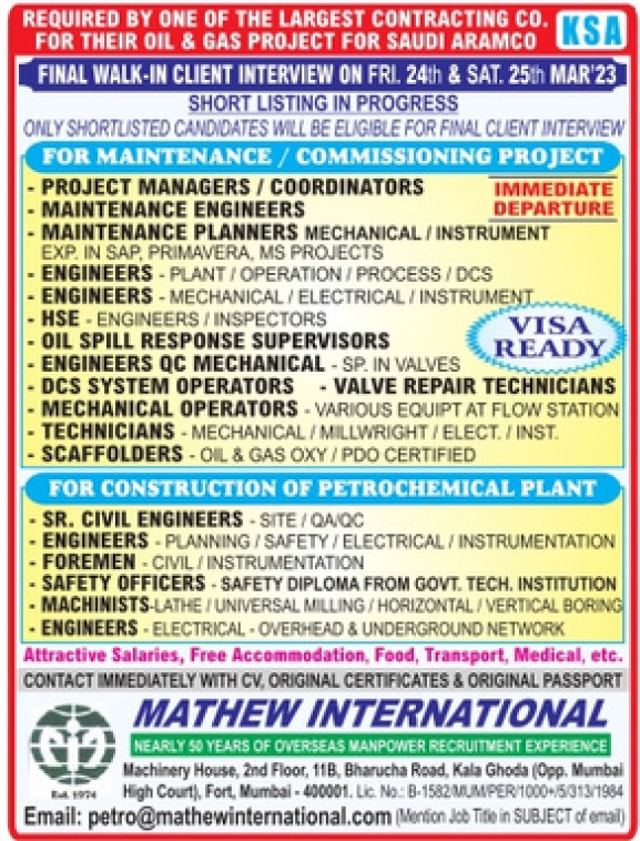 Disclaimer:- GCCWALKINS have no involvement in any recruitment process, This website just sharing job vacancies & interviews from various sources. Applicants are advised to research the bonafides of the prospective employer independently. We do NOT endorse any requests for money payments and strictly advice against sharing personal or bank related information. If you suspect any fraud or malpractice, email us at gccwalkins@gmail.com