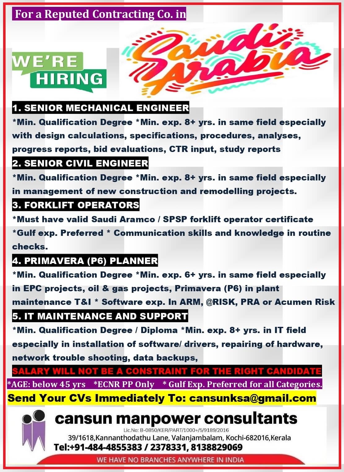 Contracting Company - Hiring for Saudi arabia